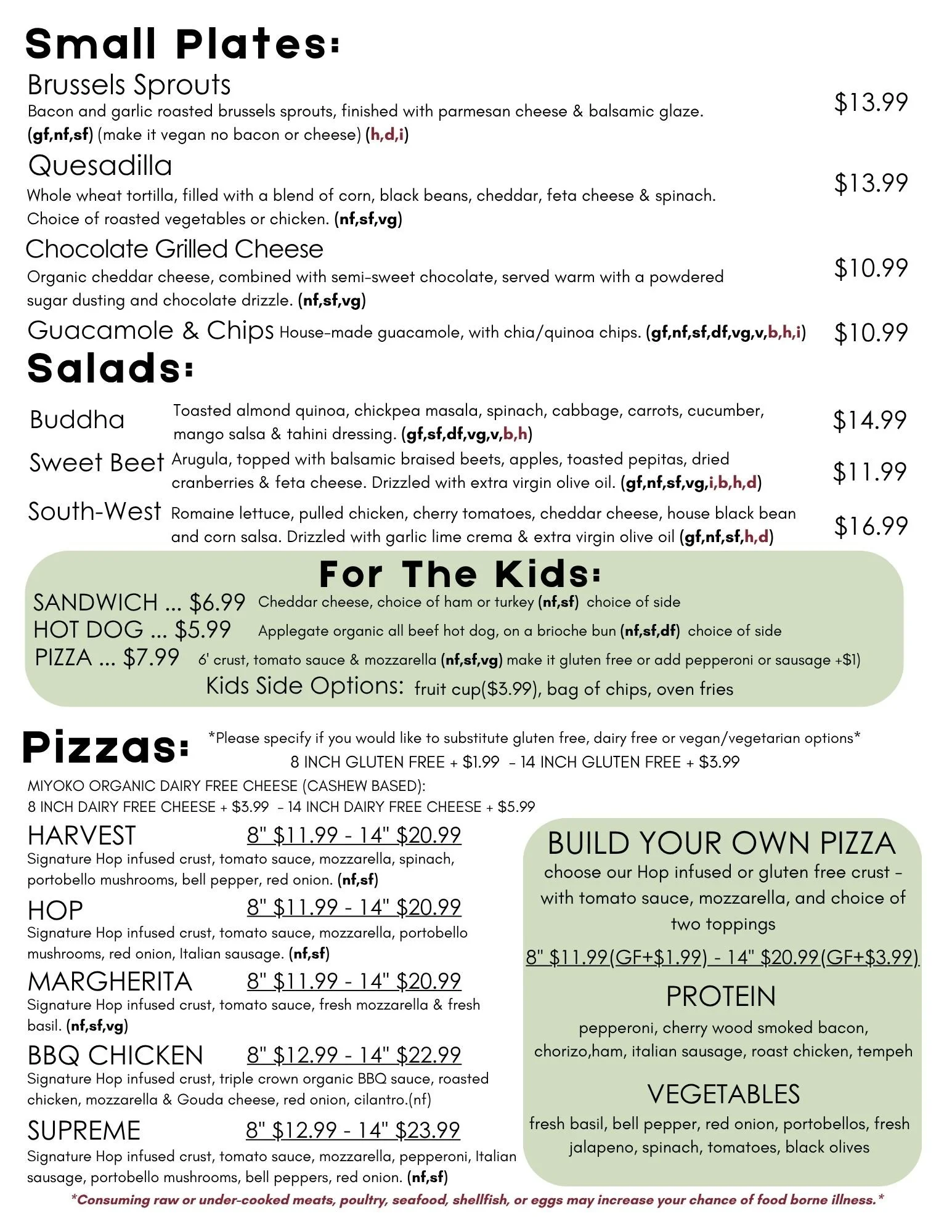 Pub Menu & Artisan Pizzas